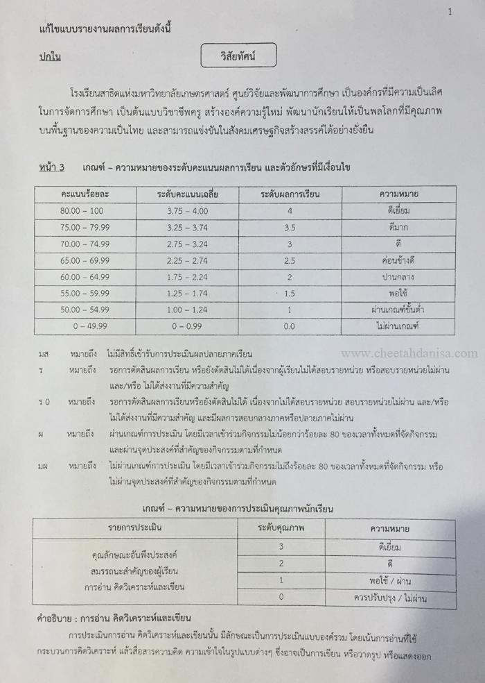 รายงานผลการเรียนระดับชั้นมัธยมศึกษาปีที่